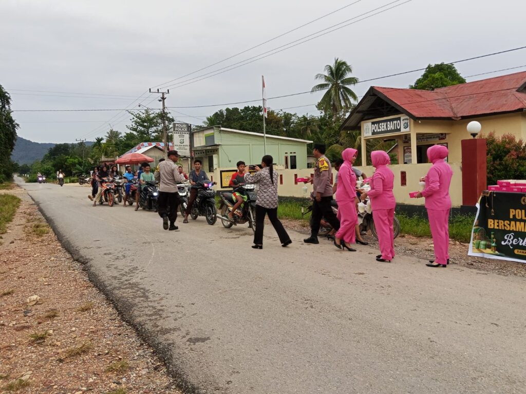 Kegiatan ini dipimpin langsung oleh Kapolsek Baito, IPDA Hardiansyah, S.H., M.H., didampingi oleh seluruh personel Polsek Baito serta pengurus Bhayangkari Ranting Baito.