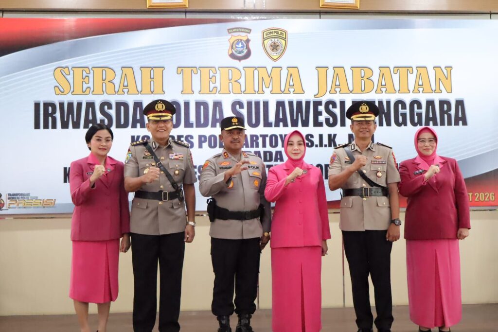 Kendari – Kepala Kepolisian Daerah Sulawesi Tenggara, Irjen Pol Didik Agung Widjanarko, S.I.K., M.H., memimpin upacara serah terima jabatan (sertijab) Inspektur Pengawasan Daerah (Irwasda) Polda Sultra yang berlangsung di Aula Dachara Polda Sultra, Senin (30/3/2026).