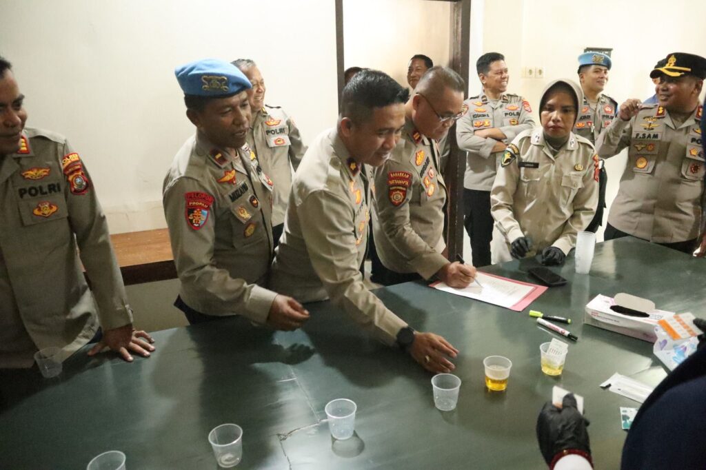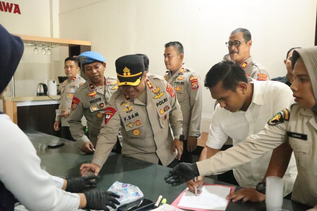 KONAWE SELATAN – Sebagai wujud nyata komitmen internal dalam menjaga profesionalitas dan integritas personel, Kapolres Konawe Selatan AKBP Febry Sam, S.I.K., M.Si., bersama Pejabat Utama (PJU) melaksanakan pemeriksaan tes urine mendadak di Lobby Utama Mako Polres Konawe Selatan, Rabu (25/02/2026).