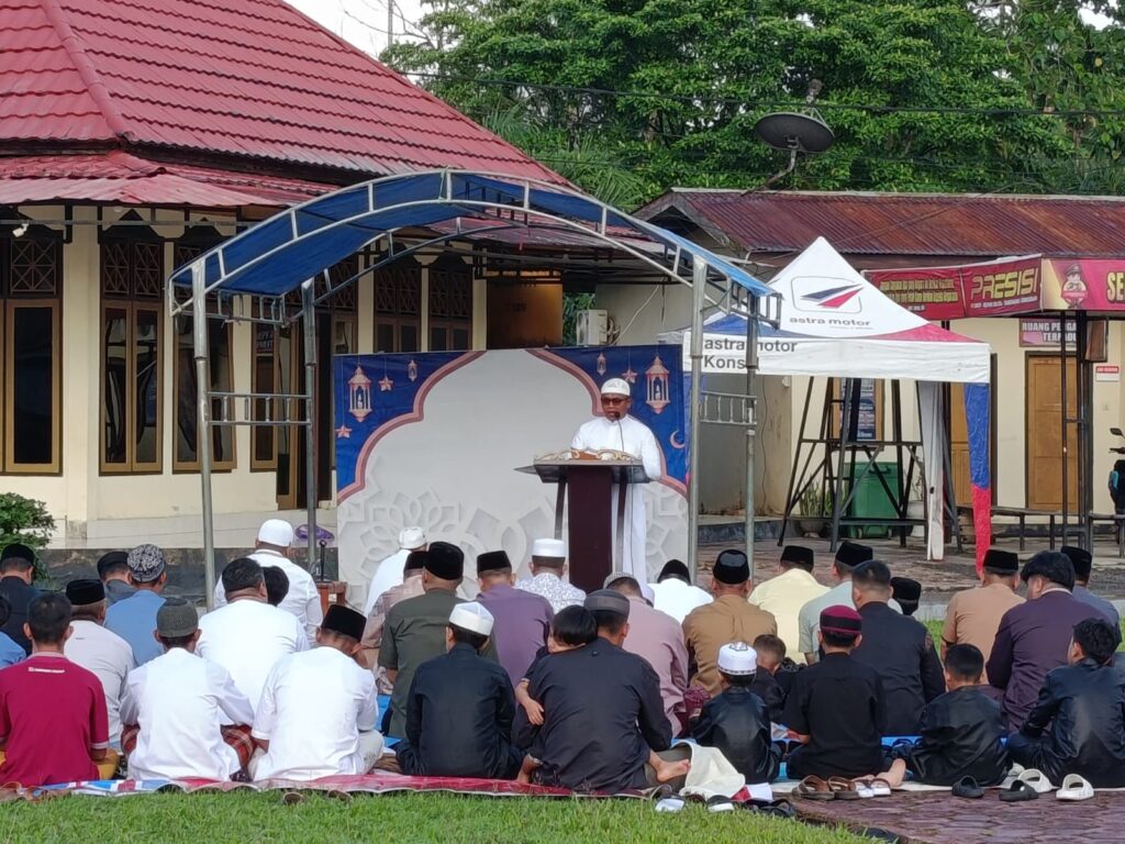 Konawe Selatan – Keluarga besar Kepolisian Resor (Polres) Konawe Selatan melaksanakan ibadah Shalat Idul Fitri 1447 H / 2026 M dengan khidmat di Lapangan Mako Polres Konawe Selatan pada Sabtu pagi (21/03/2026).