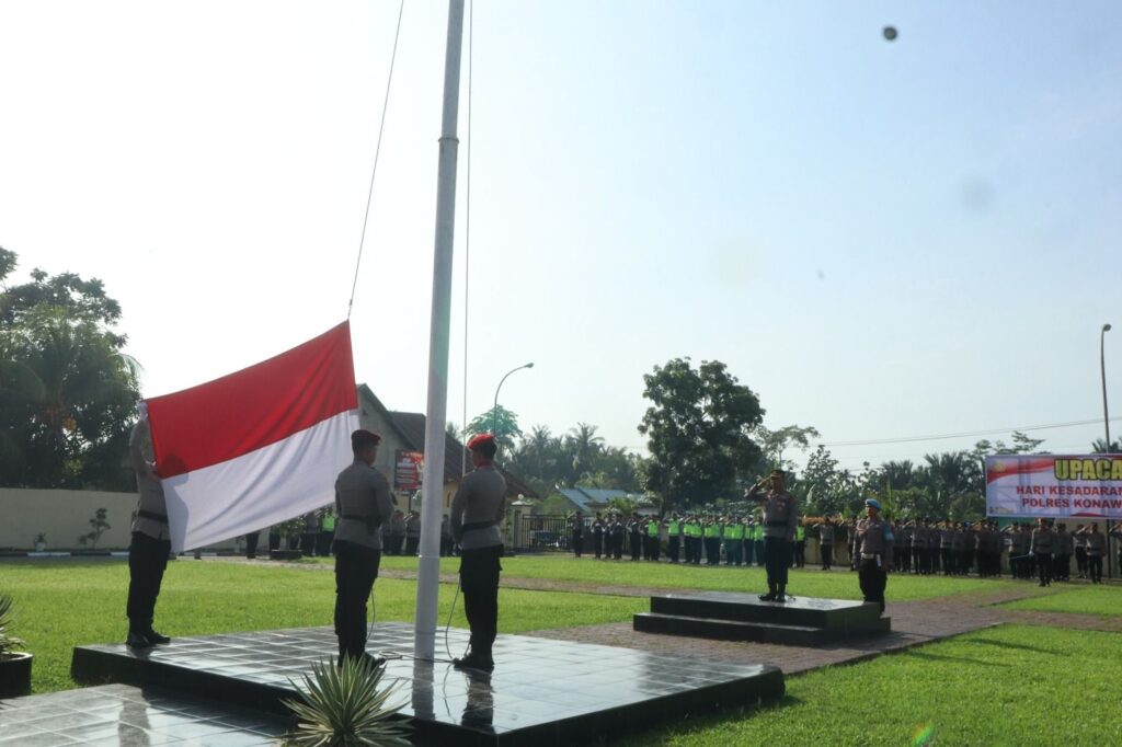 Upacara , diikuti oleh seluruh Pejabat Utama , Kapolsek Jajaran serta seluruh personel Polsres Konsel. Pengucapan Tribrata, Catur Prasetya dan Panca Prasetya KORPRI serta Pengibaran bendera merah putih juga mewarnai rangkaian kegiatan upacara kesadaran nasional tersebut.